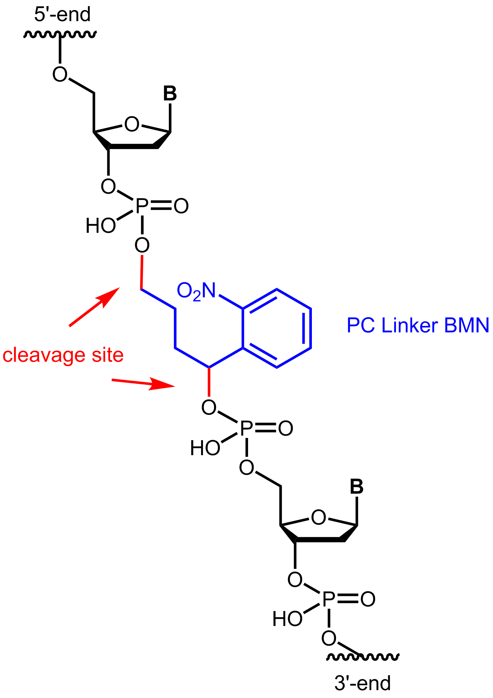Figure 1: Structure of the internal photocleavable linker BMN (PC linker BMN) bound to an oligo.