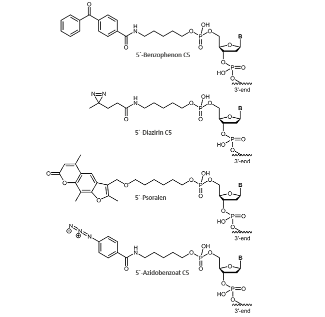 For effective cross-linking different photo-reactive groups are available that can be attached to the 5'-end of the oligonucleotide: